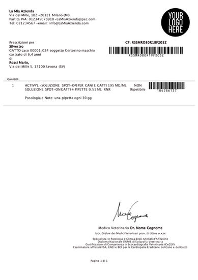 Generazione PDF della ricetta con i Barcode (per semplicare la lettura al farmacista) e Posologia (per favorire il proprietario nella somministrazione)